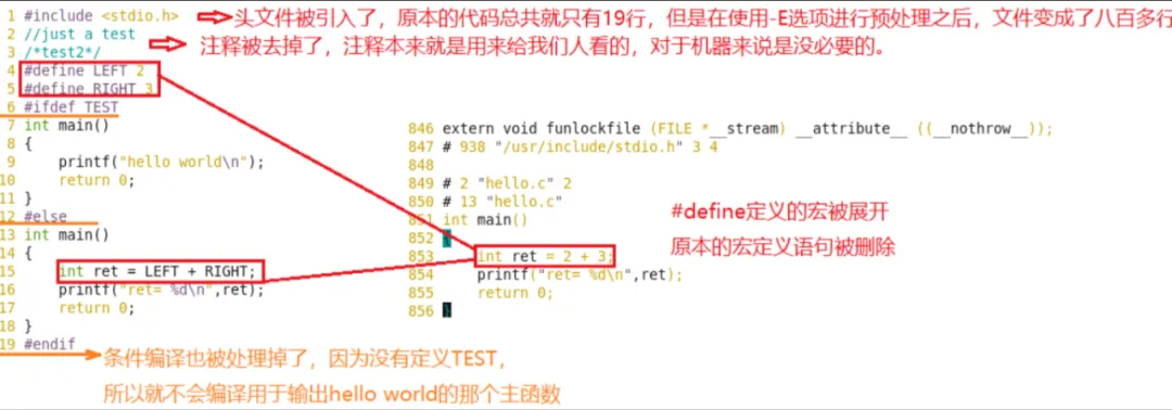 预处理是指在编译器正式处理源代码之前,对源代码进行文本级别的处理和修改,其主要操作包括: