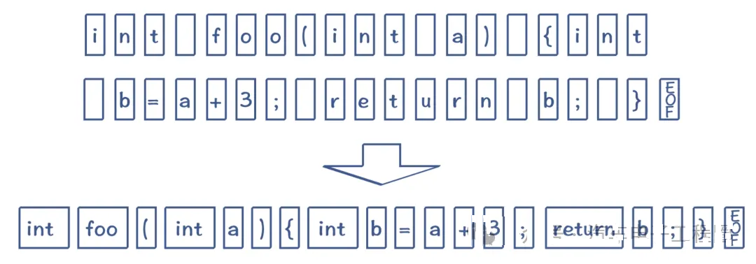 词法分析,即将源代码字符流分解成有意义的词法单元。