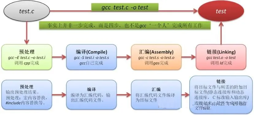 编译是指将预处理后的高级语言源代码(C/C++)翻译成目标处理器架构的汇编语言代码。其主要操作包括: