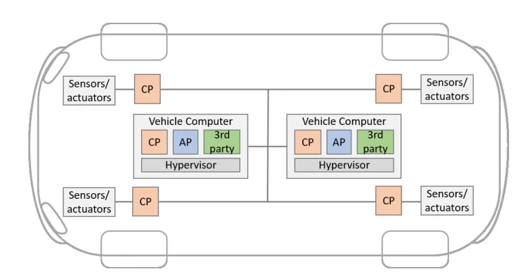 Enterprise),但它依赖于基于ARM big.Little 架构的闭源异构多处理器(HMP),并在开源虚拟机监控程序(Hypervisor)之上运行多个操作系统。此外,该架构中不同操作系统之间的通信通过专用库实现,而非采用汽车领域常用的标准中间件。