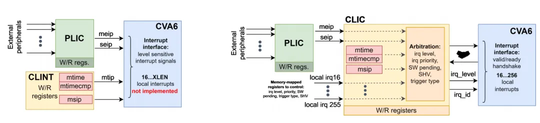 图5:(a)原始的CLINT+PLIC中断接口;(b)改进后的CLIC+PLIC中断接口