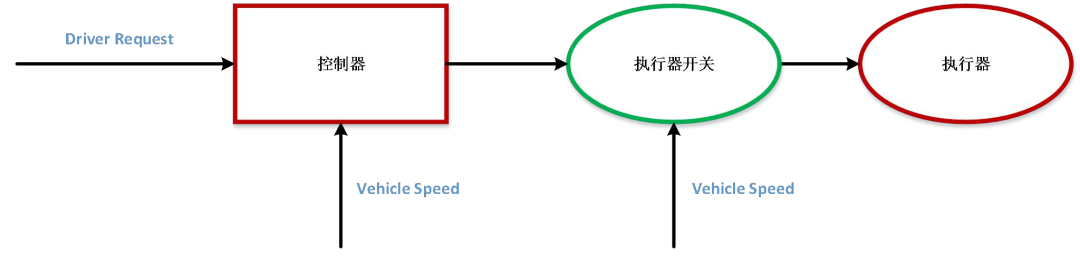 ASIL C :车速大于1 5 km /h 时应禁用此功能。 分解如下: ASIL A(C ) : 车速大于1 5 k m/h 时,控制器不应发送激活指令。 ASIL B(C ): 执行器开关应该打开当车速大于1 5 km /h 时。