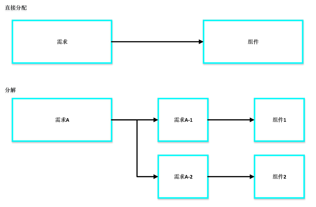 众所周知,系统层面的需求分配/分解是系统工程的常见任务,如下图所示。