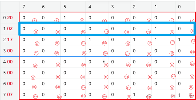 根据 Motorola 格式,将上面报文值(16进制) 转换成 2进制; 下面的表格中对应的二进制值就是上面报文值对应的值(实际上转换一下就是信号矩阵)。