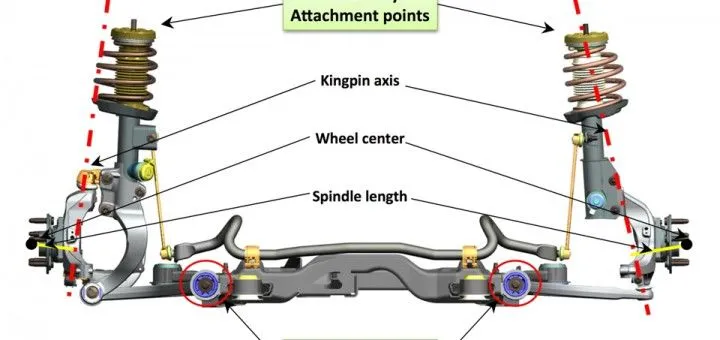 汽车的方向能自己回正,就是因为主销内倾和主销后倾,低速范围内主要是前者的作用,中高速范围主要感受到的是后者(当然由于悬架设计和驱动布局的影响,在不同车辆上两者实际的回正贡献也是会变换的)