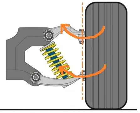 如果你开过卡丁车就知道,主销内倾的效果很明显,只要你原地打方向,就能很明显地感觉到自己和卡丁车都被“抬高”了,这也是为什么开卡丁车很累的原因之一,即有比较大的主销内倾且没有助力。