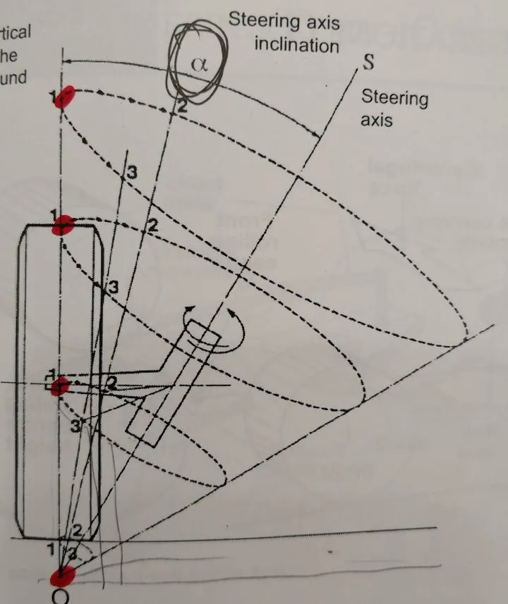 2.2 从侧面看,转向轴顶部向后倾斜,这个角度叫做主销后倾角