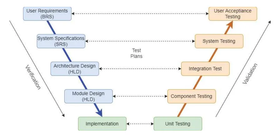 V模型是一种软件开发范式,强调软件开发生命周期(SDLC)的系统化和结构化方法。其独特的V形图描绘了开发过程中的活动流程,因此得名。V模型包括测试阶段和开发阶段之间的并行和顺序链接。软件开发过程的每个阶段都有一个独特的测试阶段,形成并行结构,请参见图2.1。