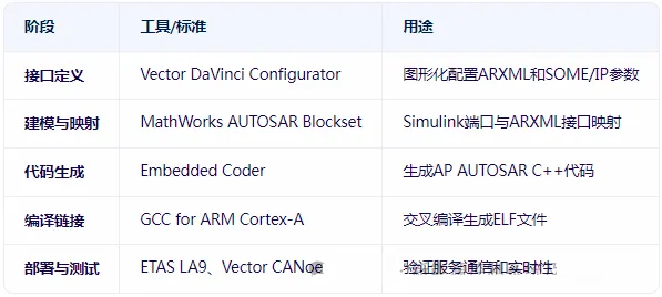 - 部署与集成:将代码部署到AP AUTOSAR平台,验证服务间通信和时序。