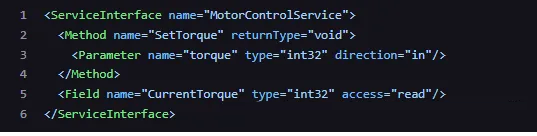 在ARXML中定义电机控制服务的SOME/IP接口,明确SetTorque方法的请求和响应格式。