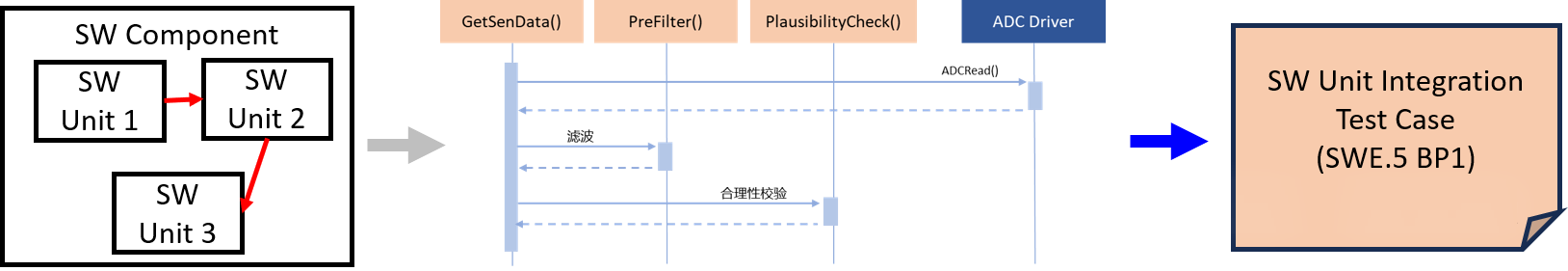 ② 依据详细设计中SW Unit间的交互调用关系,而进行的SW Unit集成测试 (映射到SWE.5 BP1, BP4)