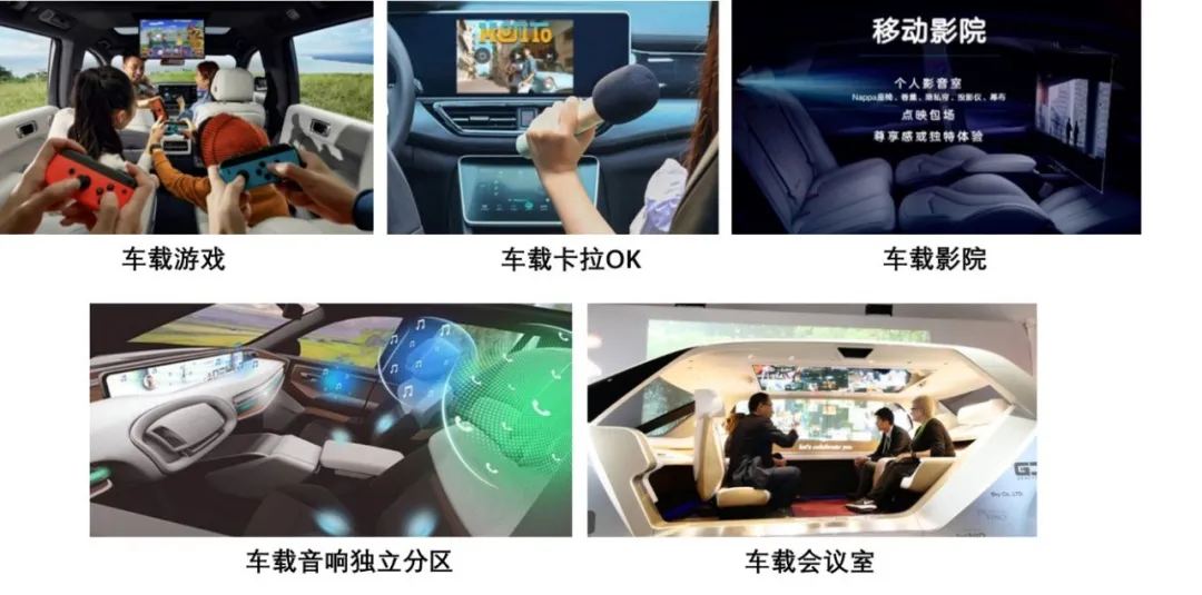 包括车载游戏、卡拉OK、车载影院、车载音响独立分区、车载会议室等等属性。