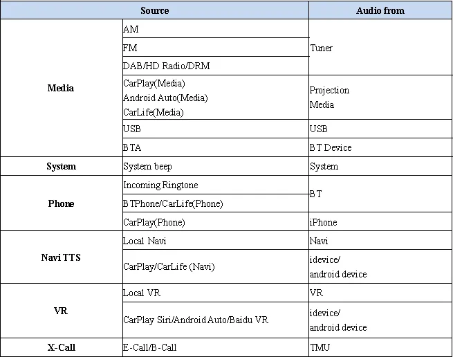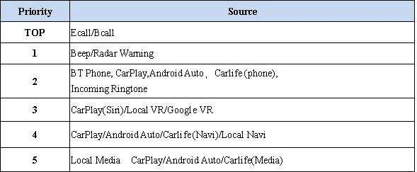 - 不同音源组合优先级矩阵及控制逻辑。