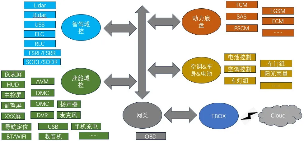 要明确智能座舱的系统范围,首先要了解智能座舱在整车架构中所处的位置。