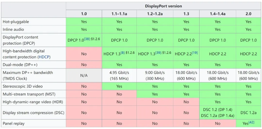 备注:DisplayPort 接口,其主链路可配置1 组、2 组或 4 组差分数据对,数据传输采用8b/10b