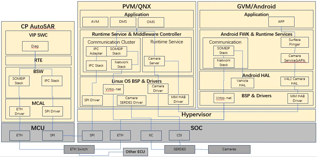 下图为高通8155采用QNX+Android虚拟化方案实现的camera系统设计简图。