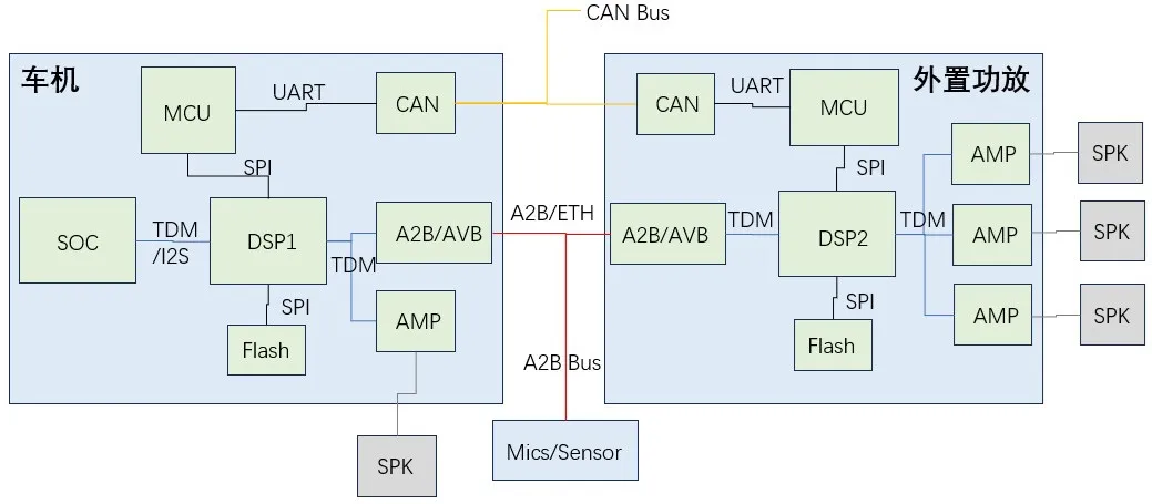 - 内部功放与外部功放的兼容设计,及高低配系统的兼容性设计;