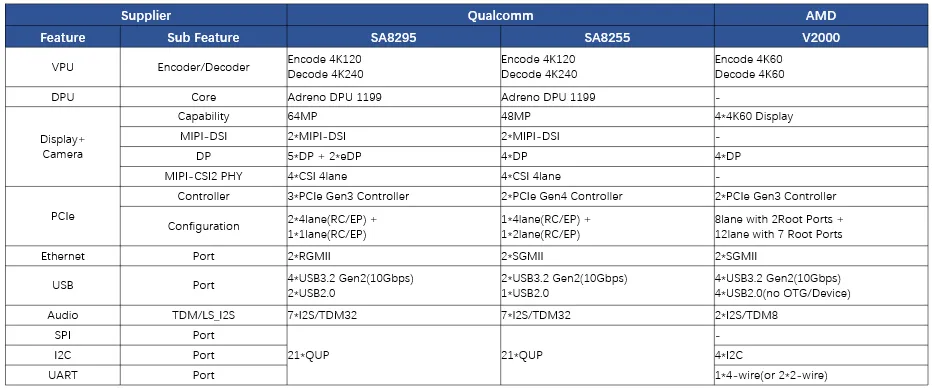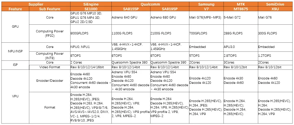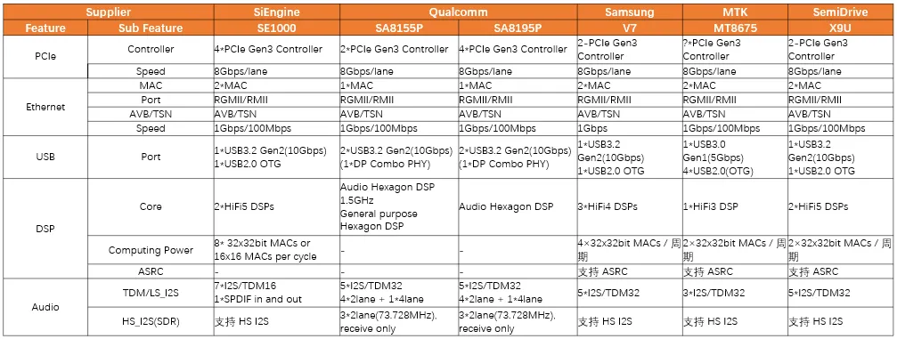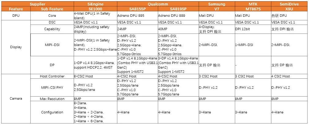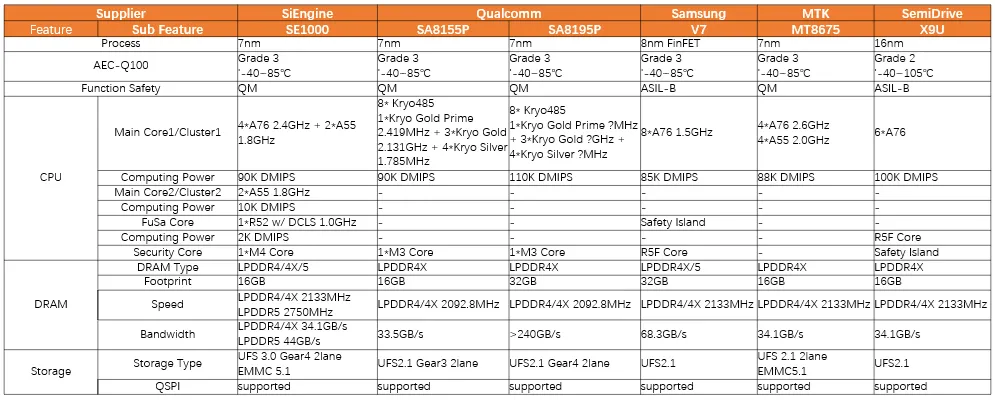 * 这里并未列举MTK的8676/8等座舱芯片,后面拿到相关参数再行补充。