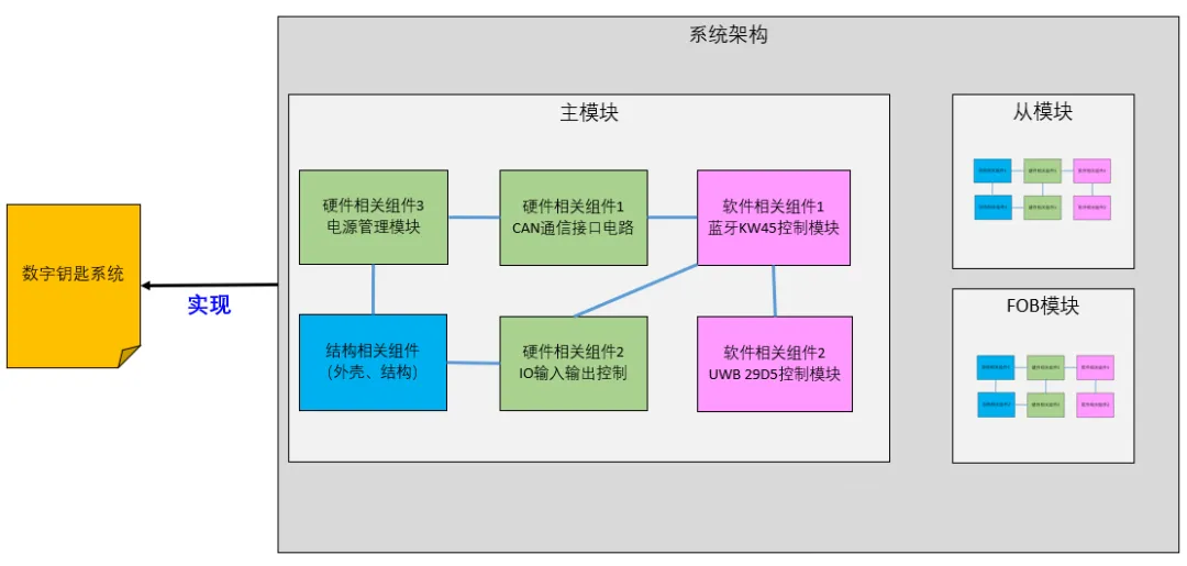 在数字钥匙系统中,可能包含主模块、从模块、钥匙模块等等独立的硬件产品模块。