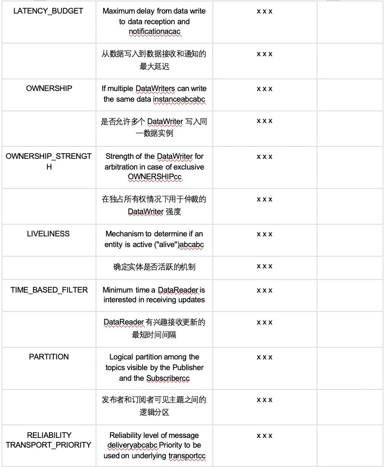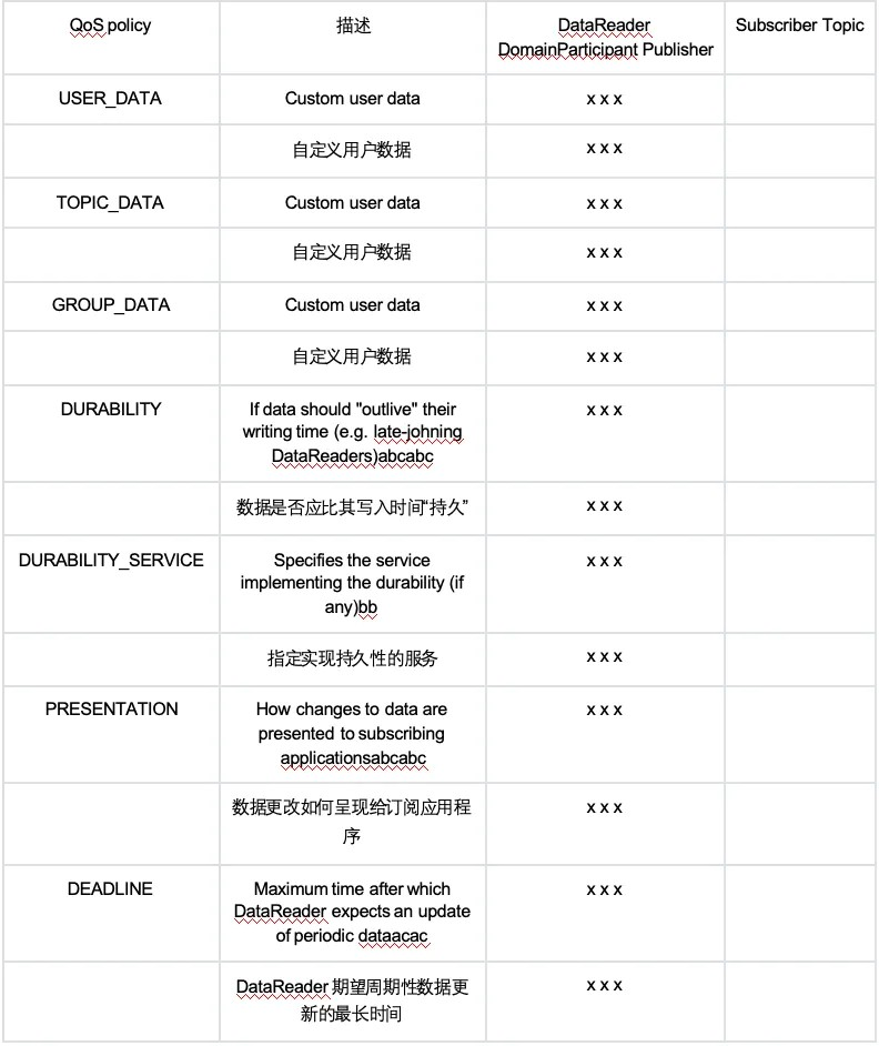 QoS即服务质量,DDS在协议层面提供多种通信服务需求的抽象,提供QoS配置来细粒度的控制通信行为,使QoS可以极大的简化通信程序的设计,无需应用再重复实现所需的服务质量。DDS标准规范即提供22种QoS。