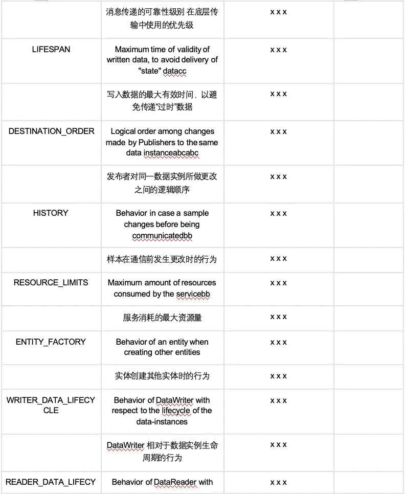 DDS 实现了 DDS 规范中的所有 QoS 策略,源码位于 src/cpp/qos/。
