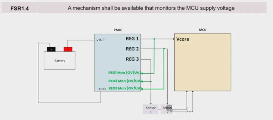 1. FSR1.4:电源管理监控要求,通过PMIC电源管理芯片来实现,如下图所示: