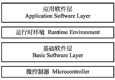 分层架构,是实习软硬件分离的关键,使软件摆脱对硬件系统的依赖。自上而下分别为:应用软件层(Application Software Layer,ASW)、运行时环境(Runtime Environment,RTE)、基础软件层(Basic Software Layer,BSW)和微控制器(MCU)。