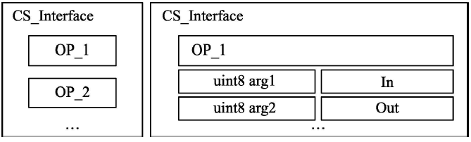 如下图所示,该客户端-服务器接口CS_Interface中定义了两个操作OP_1、OP_2,每个操作需要定义参数及方向,即函数的形参。