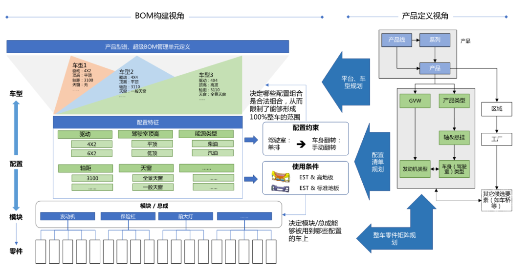 从提出规划驱动BOM概念以来,本人又经历了不少商用车企业级BOM体系构建的案例。商用车在这方面的体现尤为显著。因此,本文将以商用车的产品定义过程为例,结合模块化的落地,来探讨BOM是如何一步一步规划出来的。