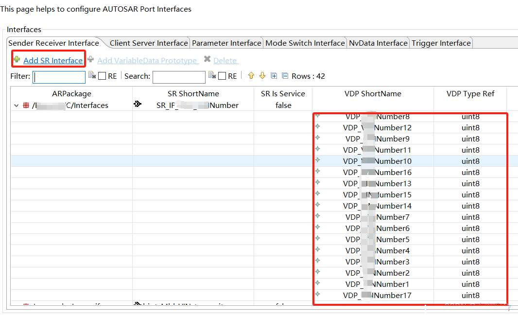 针对S/R接口,PPort“写入”接口包含的数据,RPort“读取”接口包含的数据,注意只有在Port引用了接口之后,才会建立数据的定义,不同PPort引用同一个接口会建立不同名称的数据定义,一个PPort可以对应多个RPort。