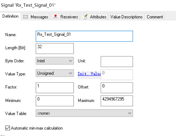 DBC导入之后会根据DBC中定义的Offset和Factor完成原始值(总线上的值)到物理值(信号的物理值是物理量(如速度、转速、温度等)的值)的计算方法,具体的公式为:[Physical