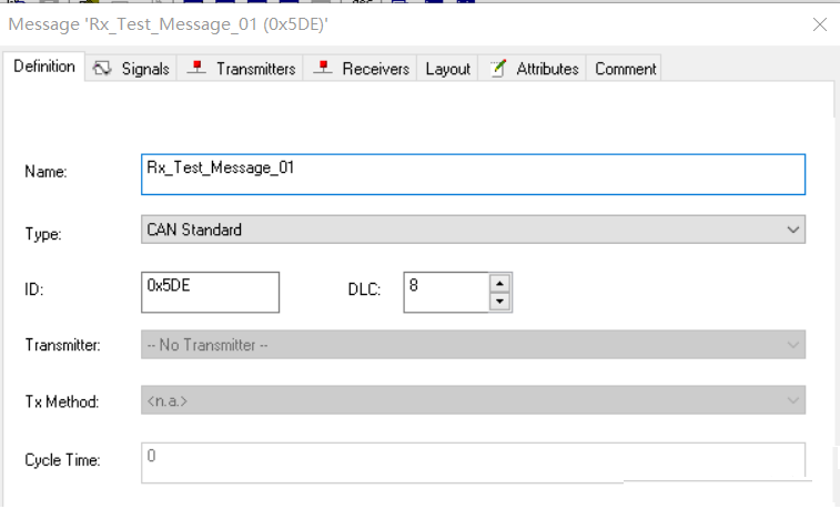 定义了所有的信号之后,即可进行报文设计。右键单击Message新建即可,主要需要定义的属性如下,并将之前定义好的信号包含进来。