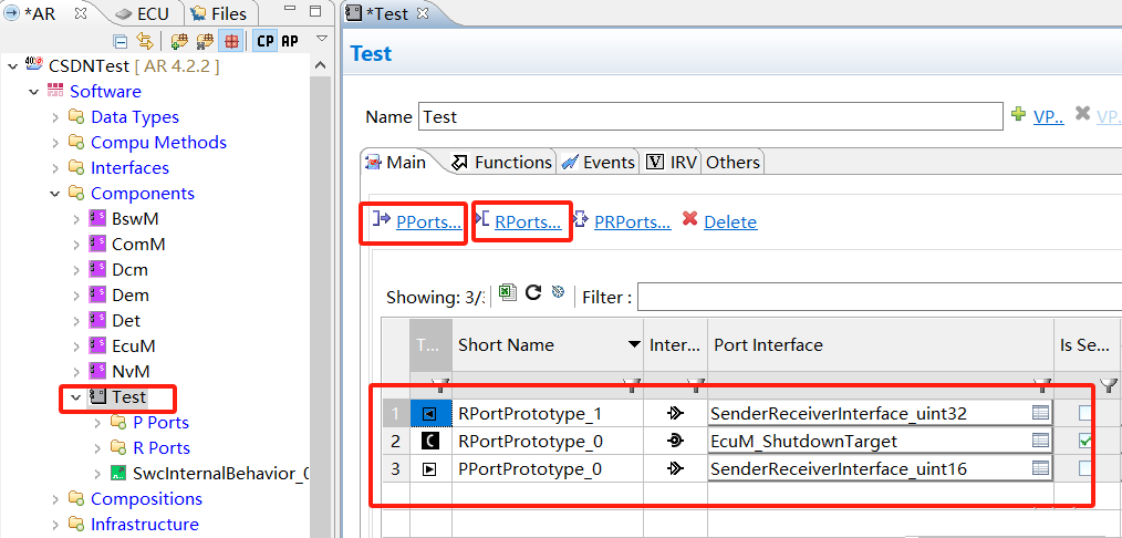 下图建立了三个Port口,一个是C/S类型的RPort,一个是S/R类型的PPort,一个S/R类型的RPort。
