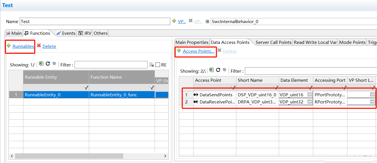 然后我们建立一个Runnables,建立完之后,增加针对S/R类型PPort口的数据访问如下,我们选择DataSendPoints显式(Explicit,应用于实时性较高的数据传输,可以通过排布任务调度在一个调度周期内将数据传输到另一个组件)。然后增加针对S/R类型RPort口的数据访问,选择DataReceivePointByArguments显示访问。