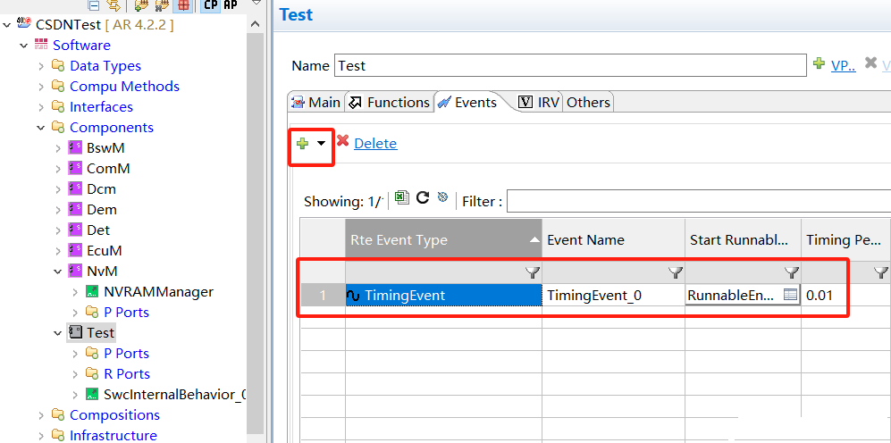 最后,我们添加运行实体的RTE事件,我们选择周期性事件,并将周期设置成0.01s。