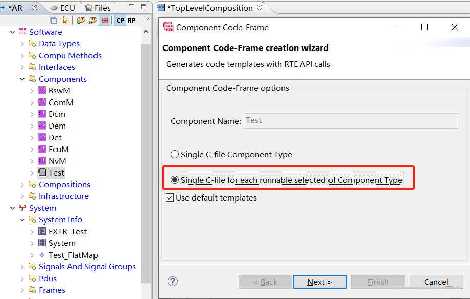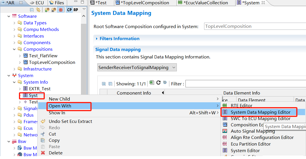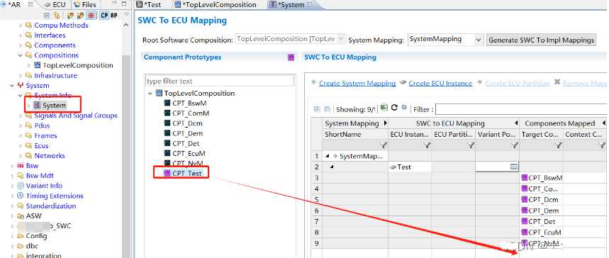 至此,组件相关的设计已经完成,但是要想正确的生成RTE,我们还需要以下几个步骤将组件跟之前建立的部件,系统,ECU等建立关系。