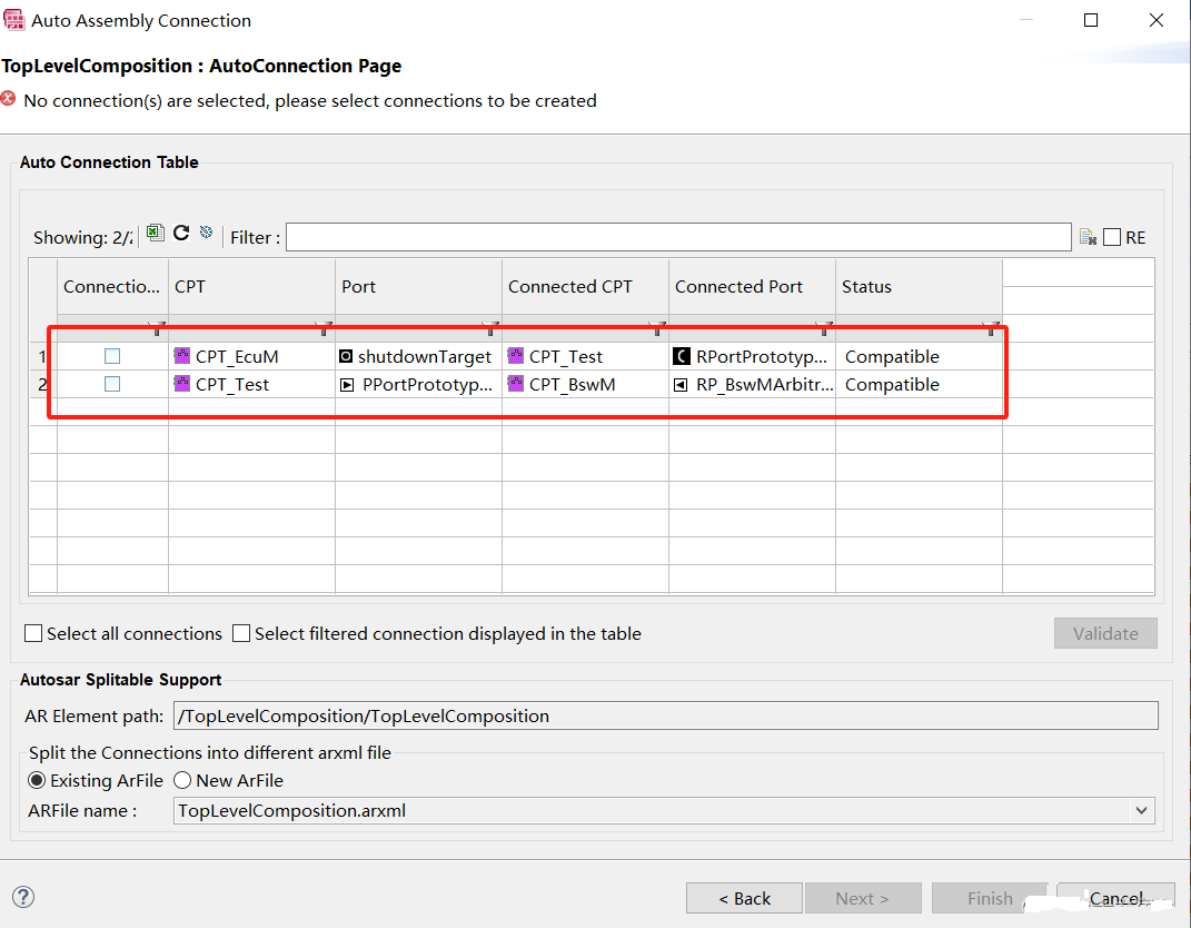 选择需要进行的连接,勾选对应连接然后点击Finish完成连接
