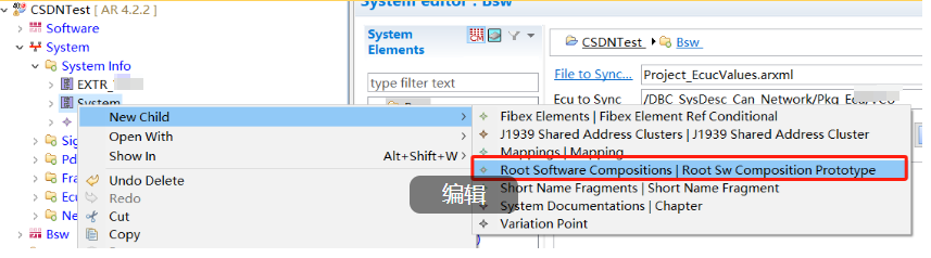 系统建立完成之后,需要为其添加一个Compositon,通过下图新建一个Root SW Comppsition