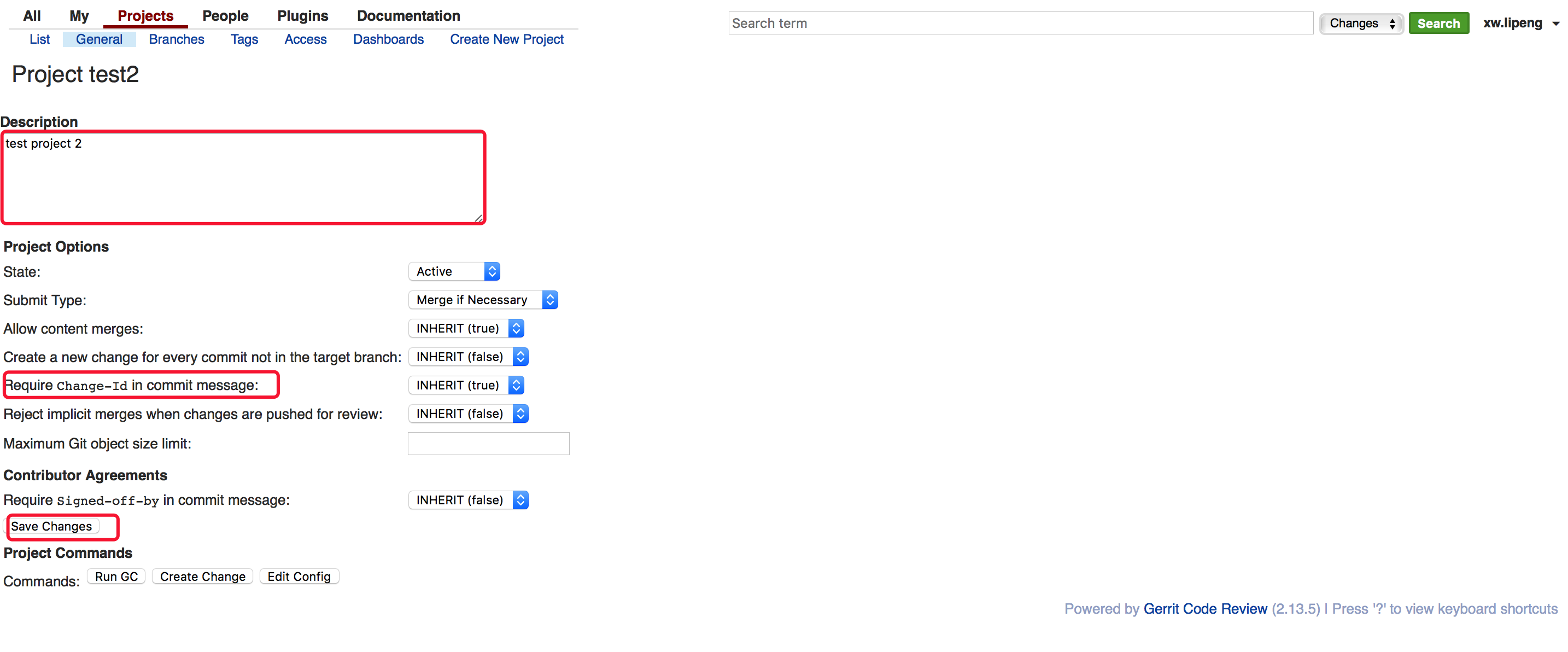 因为之前我们已经监听了All-Projects,而test2工程又是默认继承自All-Projects的,所以我们就可以收到了,如果当前管理员没有监听All-Projects,就需要手动把test2项目加进来,否则是不会在watched页面看到这条推送提醒的。