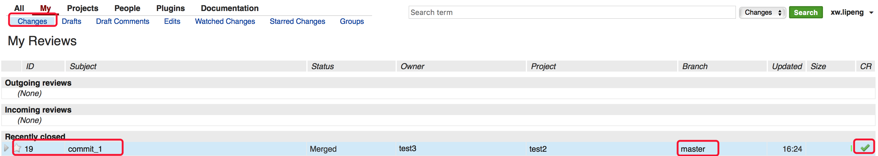 合并了之后,可以在 My --> Changes 中看到我们的审核历史
