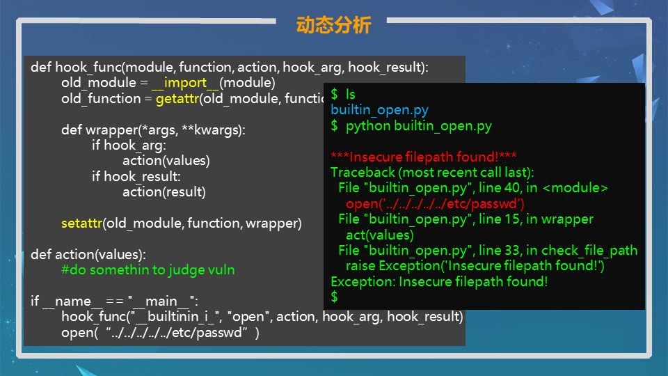 拦截进入函数的参数,判断是否有恶意参数进入,从而判断是否存在漏洞