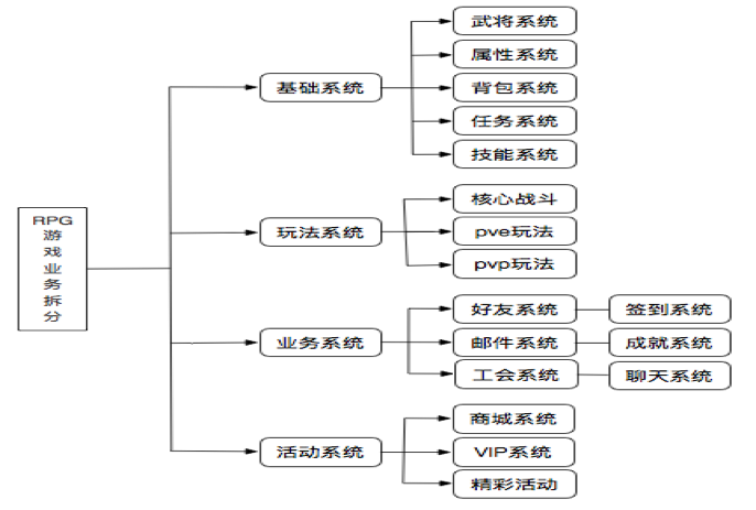 从业务层面,其实所有的RPG游戏都具有武将、属性、背包、任务和技术等五大基础系统,而各游戏的差异化大多在不同的玩法系统,业务系统和活动系统也有很多相似的地方。