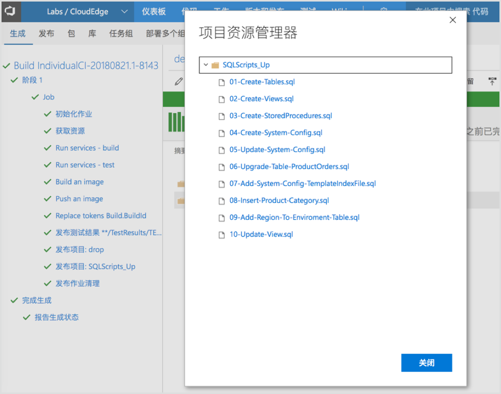 在持续集成中,将SQL升级脚本文件夹发布到Build Artifacts,供持续部署使用,如下图所示: