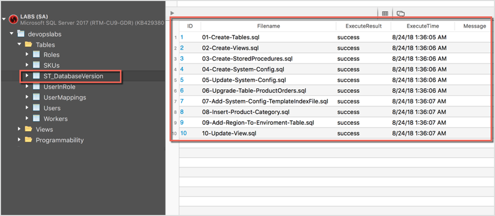 发布服务在测试环境数据库按编号依次顺序执行SQL升级脚本完成数据库升级,并完成应用升级部署。