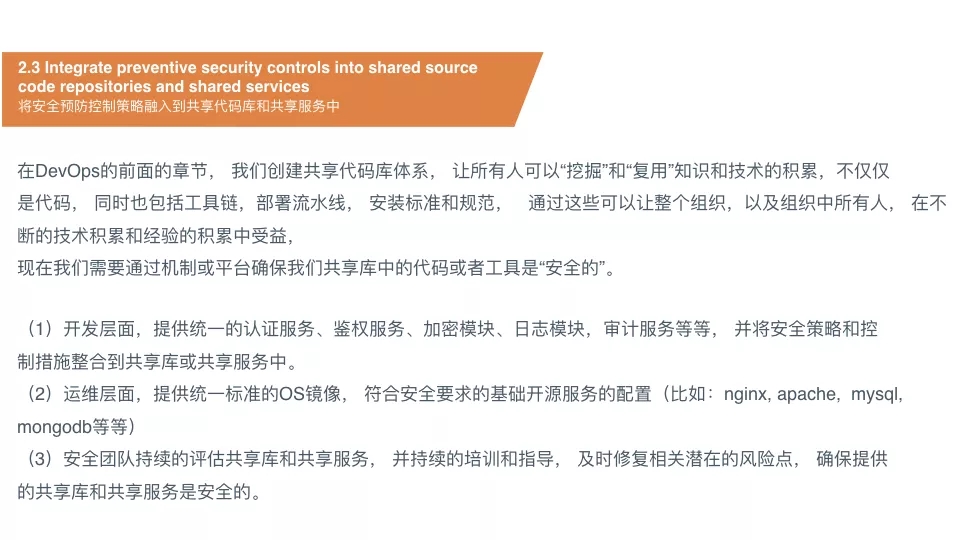 source code prepositories and shared services(将安全预防控制策略融入到共享代码库和共享服务中)