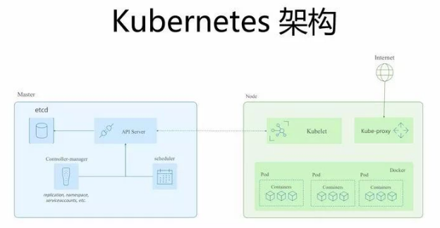 Kubernetes 的架构比较简单,分为 Master 和 Node 两部分。
