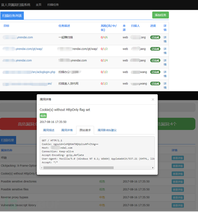 µÚ¶þ½×¶Î£¬µ±Íê³É¹¦ÄÜ×Ô¶¯»¯²âÊԺ󣬿ÉÒÔ½øÐа²È«×Ô¶¯»¯²âÊÔ£¨É¨Ã裩¡£ÔÚÕâÀïÎÒÃǼòµ¥·â×°ÁË¿ªÔ´µÄ©¶´É¨Ã蹤¾ß£¬½«É¨ÃèÈÎÎñ¡¢Â©¶´Ö´ÐÐÃèÊö¡¢½á¹ûµÈÐÅϢͨ¹ýWEB·½Ê½½øÐÐչʾ£¬·½±ãͳһʹÓú͹ÜÀí¡£