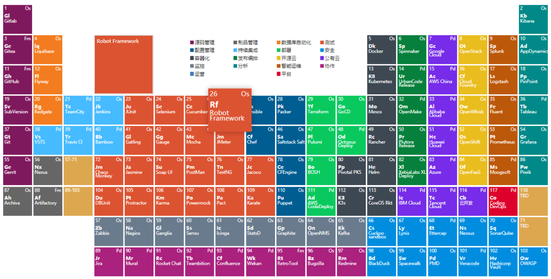 DevOps 工具元素周期表。帮助您进行数字化时代的 DevOps 工具选型。