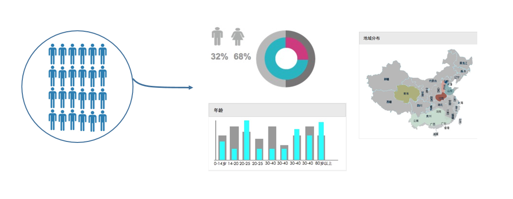 分析一群人而不分析一个人(我们的系统目前只支持1万以上的人群画像分析)。