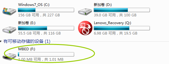 为什么会多出一个盘符呢,卖个关子。硬件我们搭好了,接下来就是软件环境了,一直在讲mbed的web在线开发环境多么方便,那我们就来亲身体验一下吧。